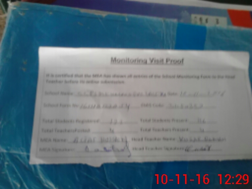 | Attendance Register | Head Teacher | MEA with School | Visit Proof |