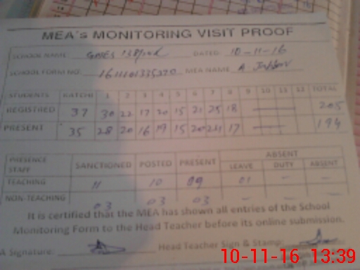 | Certified that this School was Inspected by the Undersigned MEA/DMO Today and the Information Stated Above is as Per Record. | |||||