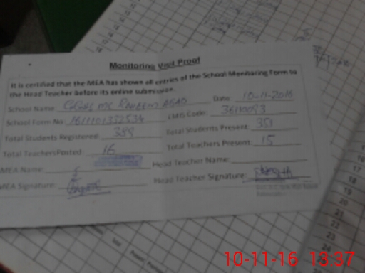 | Attendance Register | Head Teacher | MEA with School | Visit Proof |