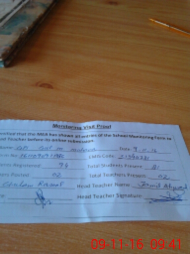 | EMIS Code: 31340731 | Name of School: GPS GUL MUHAMMAD MOHANA | |||