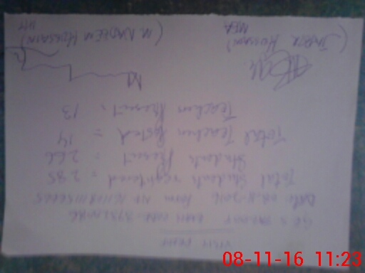 | Monitoring Date: 08-11-2016 | Start Time: 08-11-2016 10:40 AM | End Time: 08-11-2016 11:27 AM | Name of MEA: Rt**** Ja**** Hu**** | |