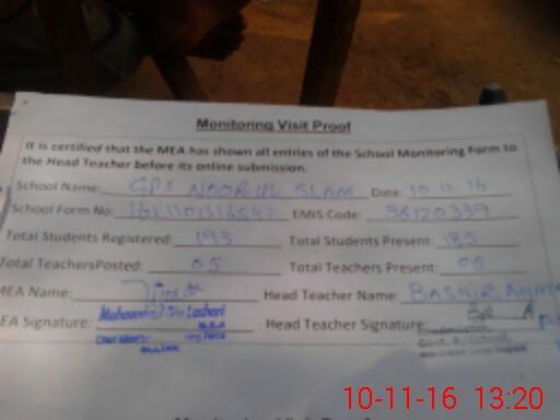 | EMIS Code: 36120339 | Name of School: GPS NOOR-UL-ISLAM | |||