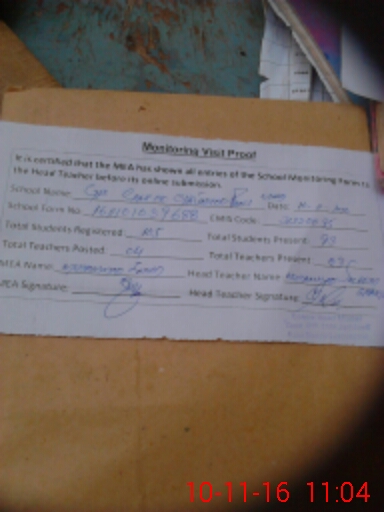 | Attendance Register | Head Teacher | MEA with School | Visit Proof |