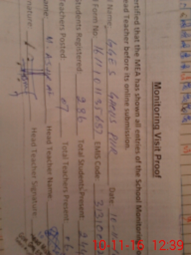 | Certified that this School was Inspected by the Undersigned MEA/DMO Today and the Information Stated Above is as Per Record. | |||||