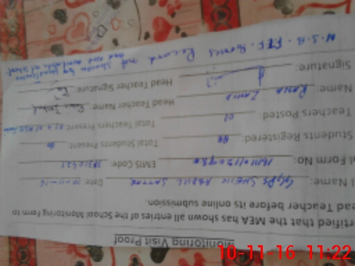 | Certified that this School was Inspected by the Undersigned MEA/DMO Today and the Information Stated Above is as Per Record. | |||||