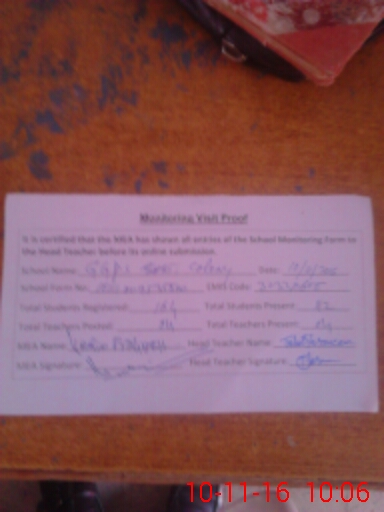 | Attendance Register | Head Teacher | MEA with School | Visit Proof |