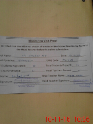 | Attendance Register | Head Teacher | MEA with School | Visit Proof |