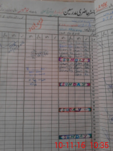 | CNIC | Full Name | Designation | R/C | Absence During Last Calender Month |