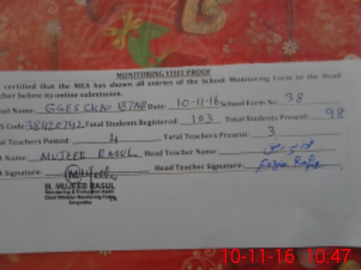 | Certified that this School was Inspected by the Undersigned MEA/DMO Today and the Information Stated Above is as Per Record. | |||||