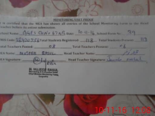 | Certified that this School was Inspected by the Undersigned MEA/DMO Today and the Information Stated Above is as Per Record. | |||||