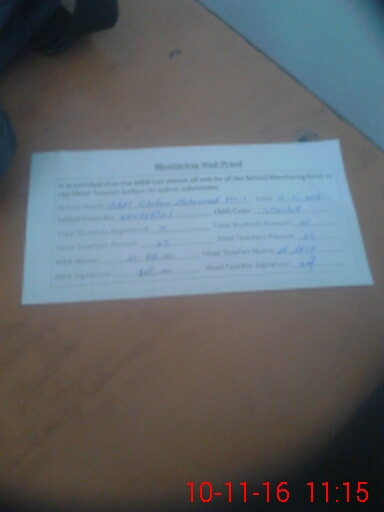 | Attendance Register | Head Teacher | MEA with School | Visit Proof |