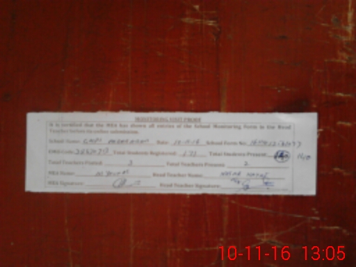 | Attendance Register | Head Teacher | MEA with School | Visit Proof |