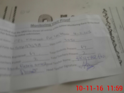 | Name: AK**** AL**** Designation: (School Headmaster's/Headmistress's) PST Phone/Cell Number: 03**** |