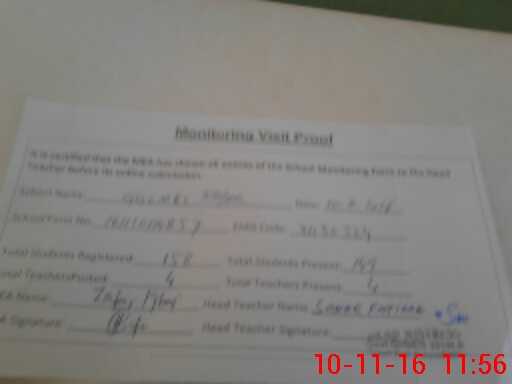 | Attendance Register | Head Teacher | MEA with School | Visit Proof |