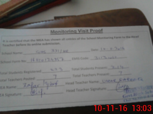 | EMIS Code: 31130010 | Name of School: GHS CHAK 331/HR | |||