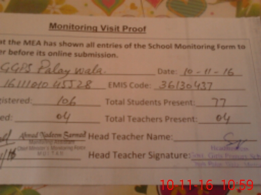 | EMIS Code: 36130437 | Name of School: GGPS PALAY WALA P/O MOZA SHAIR SINGH NEAR 19 KASSI | |||