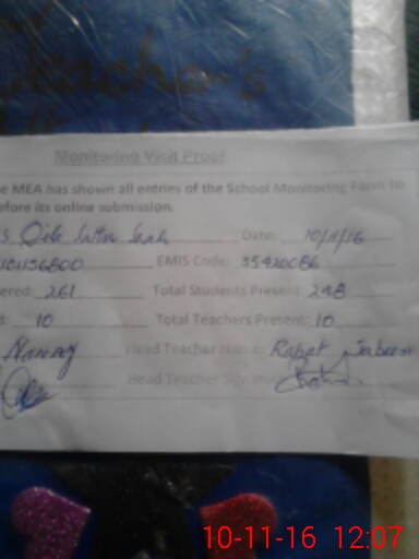 | Attendance Register | Head Teacher | MEA with School | Visit Proof |