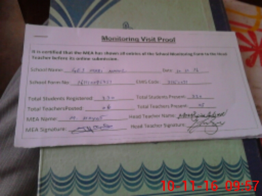 | Attendance Register | Head Teacher | MEA with School | Visit Proof |