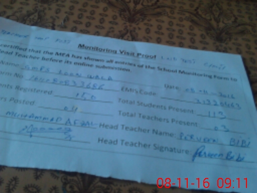 | Attendance Register | Head Teacher | MEA with School | Visit Proof |