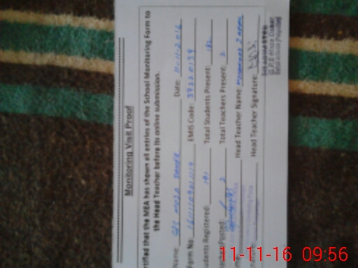 | Monitoring Date: 11-11-2016 | Start Time: 11-11-2016 09:01 AM | End Time: 11-11-2016 09:56 AM | Name of MEA: Gh**** Mu**** Mu**** (R**** | |