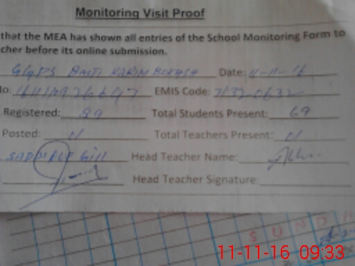 | Attendance Register | Head Teacher | MEA with School | Visit Proof |