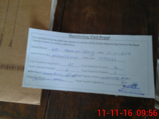 | Attendance Register | Head Teacher | MEA with School | Visit Proof |