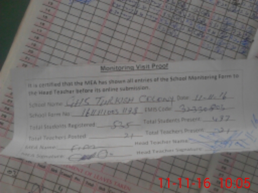 | Attendance Register | Head Teacher | MEA with School | Visit Proof |