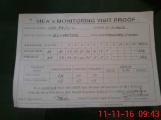 | Attendance Register | Head Teacher | MEA with School | Visit Proof |