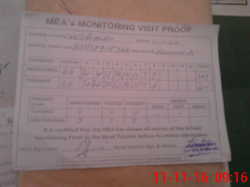| Attendance Register | Head Teacher | MEA with School | Visit Proof |