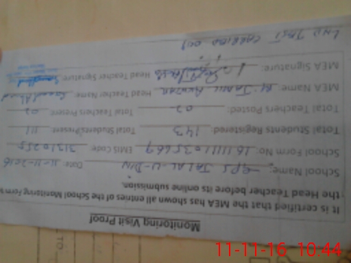 | Certified that this School was Inspected by the Undersigned MEA/DMO Today and the Information Stated Above is as Per Record. | |||||