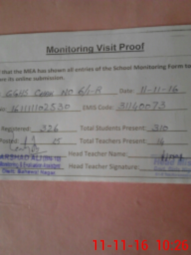 | EMIS Code: 31140073 | Name of School: GGHS CHAK NO 6/1-R | |||