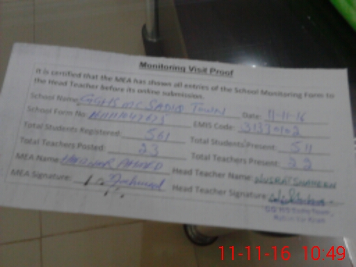 | EMIS Code: 31330102 | Name of School: GGHS MC SADIQ TOWN | |||