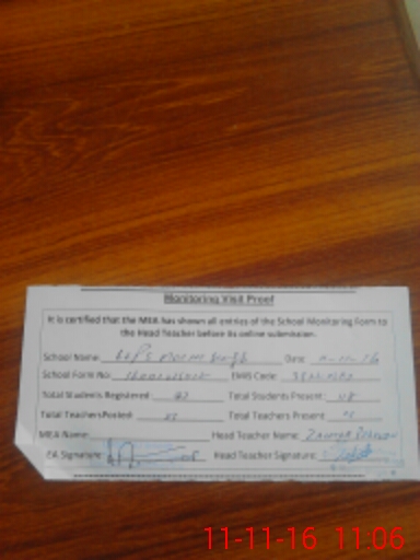 | Attendance Register | Head Teacher | MEA with School | Visit Proof |