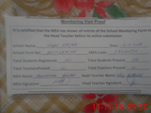 | Certified that this School was Inspected by the Undersigned MEA/DMO Today and the Information Stated Above is as Per Record. | |||||