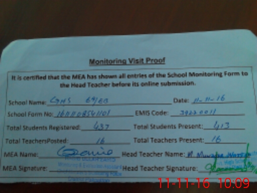 | Attendance Register | Head Teacher | MEA with School | Visit Proof |