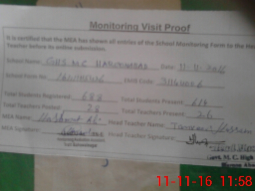 | EMIS Code: 31140006 | Name of School: GHS MC HAROON ABAD | |||
