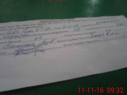 | Name: HA**** AL**** Designation: (School Headmaster's/Headmistress's) PST Phone/Cell Number: 03**** |