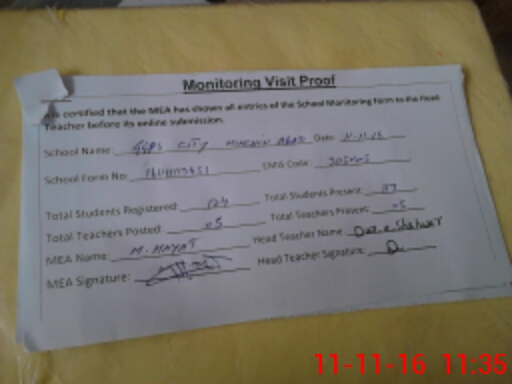 | Attendance Register | Head Teacher | MEA with School | Visit Proof |