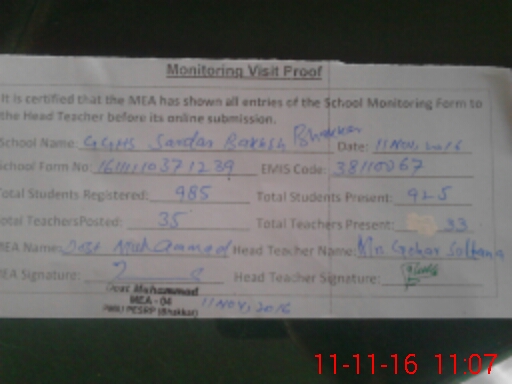 | EMIS Code: 38110067 | Name of School: GGHS SARDAR BAKHSH | |||
