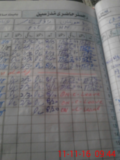 | CNIC | Full Name | Designation | R/C | Absence During Last Calender Month |