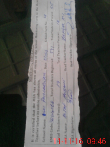 | Attendance Register | Head Teacher | MEA with School | Visit Proof |