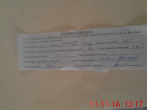 | Attendance Register | Head Teacher | MEA with School | Visit Proof |
