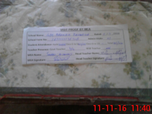 | Attendance Register | Head Teacher | MEA with School | Visit Proof |