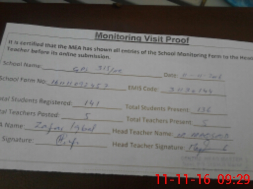 | Attendance Register | Head Teacher | MEA with School | Visit Proof |