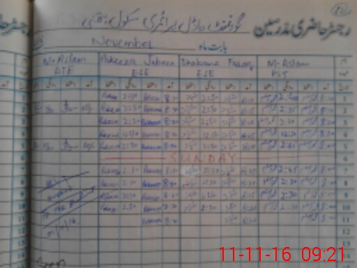 | CNIC | Full Name | Designation | R/C | Absence During Last Calender Month |