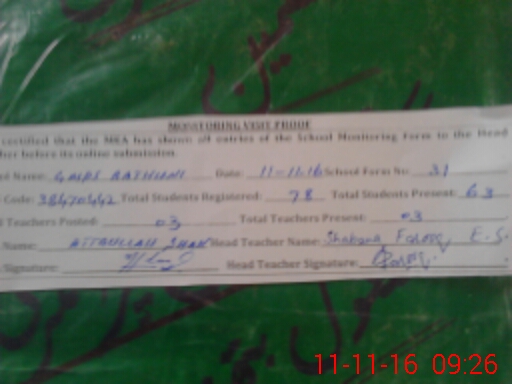 | Attendance Register | Head Teacher | MEA with School | Visit Proof |