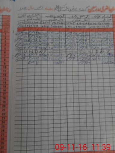 | CNIC | Full Name | Designation | R/C | Absence During Last Calender Month |