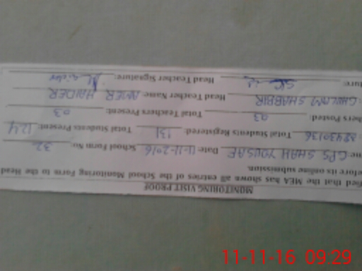 | EMIS Code: 38430136 | Name of School: GPS SHAH YOUSAF | |||