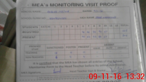 | Attendance Register | Head Teacher | MEA with School | Visit Proof |