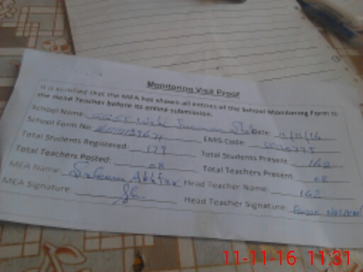 | Attendance Register | Head Teacher | MEA with School | Visit Proof |